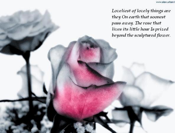 there’s a quote on it, it goes : Loveliest of lovely things are they, on earth that soonest pass away. The rose that lives its little hour is prized beyond the sculptured flower.