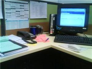 me and four walls, the rest of the office are in a meeting. my media player on volume 3, fyi, no rock and noise songs, more of the relaxing kind of songs.